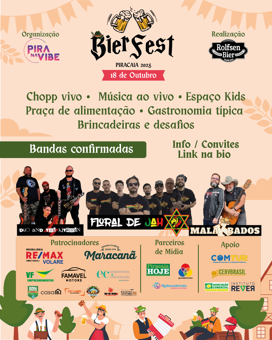 Com o apoio e patrocínio de diversas empresas e instituições locais, a II Bier Fest reforça o papel da Rolfsen Bier como protagonista do turismo e da cultura em Piracaia, celebrando a união entre tradição, comunidade e boa cerveja.